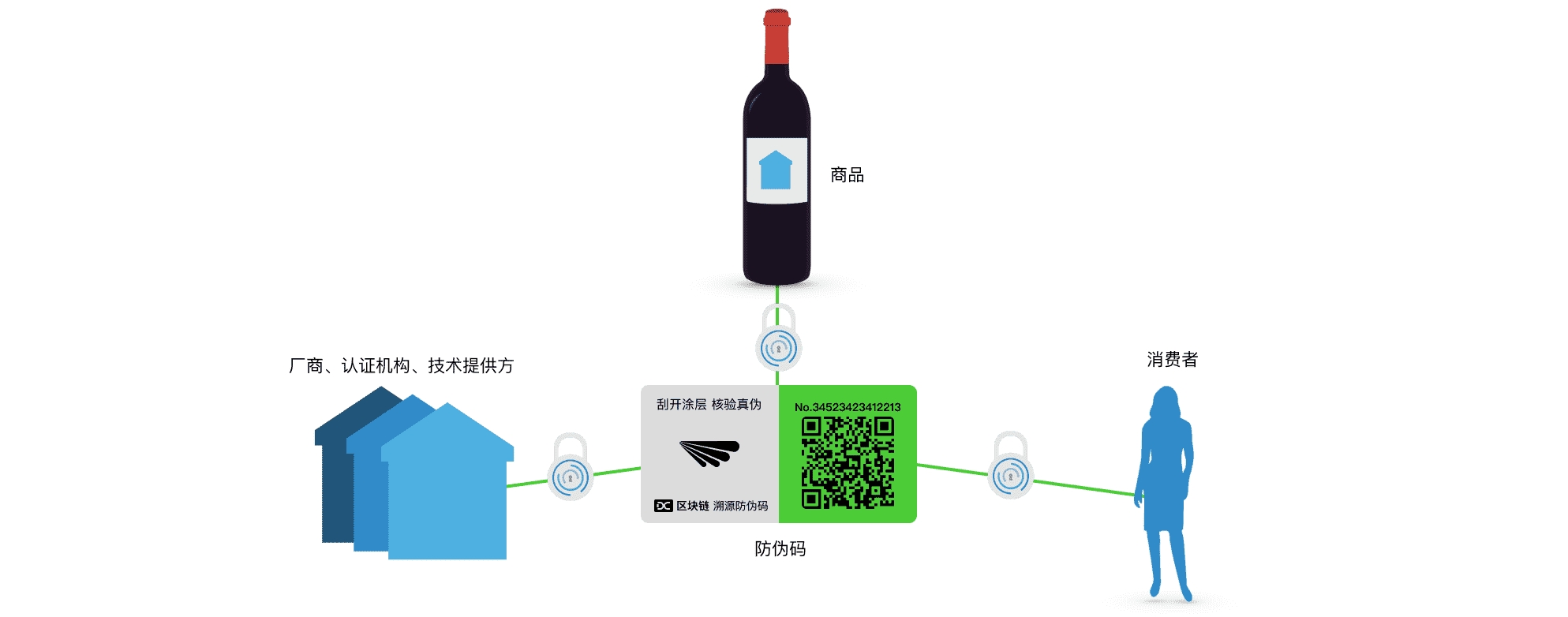 每一枚防伪码都是多方签名上链,可确认其发行主体、认证机构和技术提供方的身份